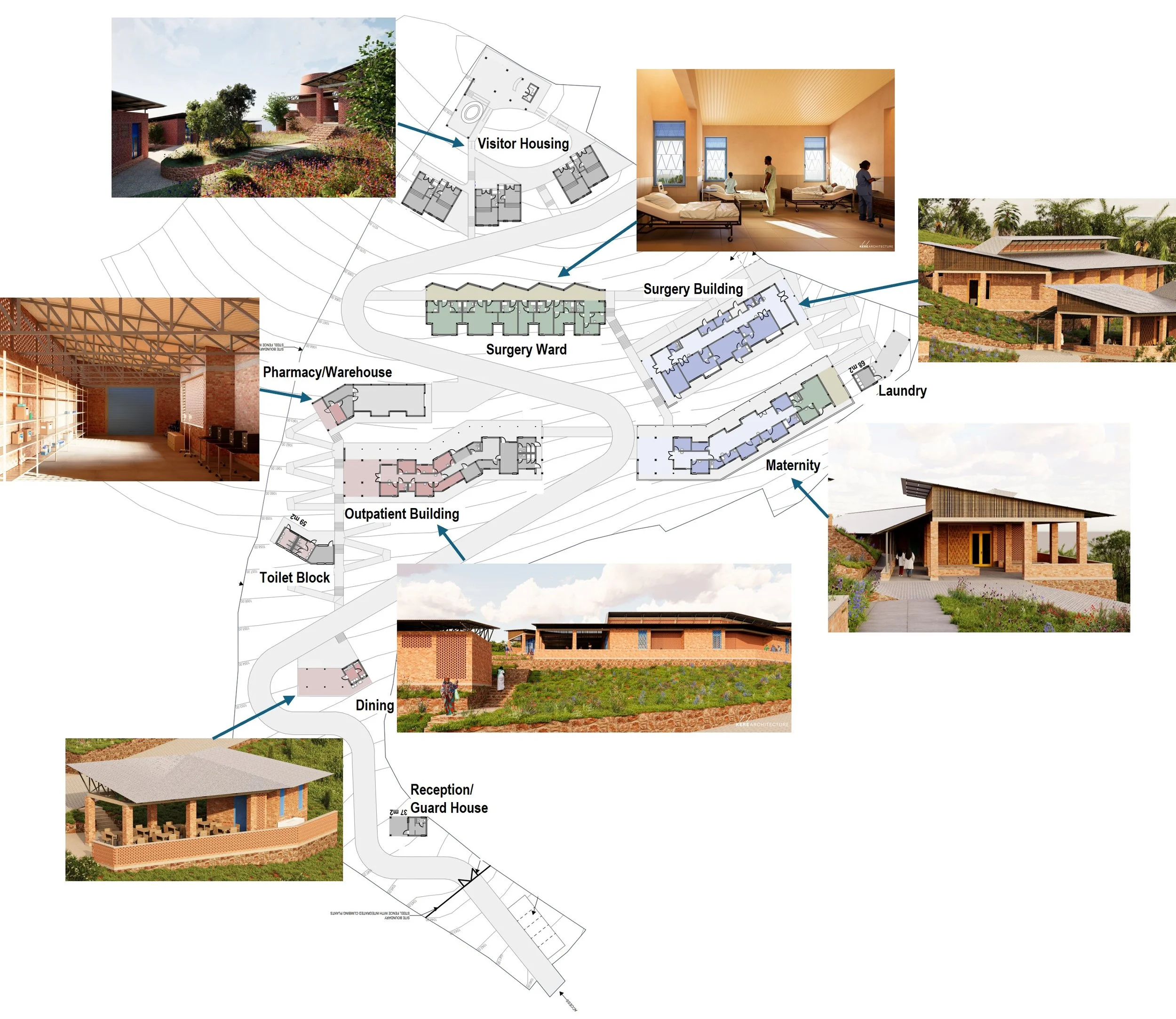 The Clinic draws its inspiration, both architecturally and operationally, from the Dr. Sedogo Clinic in Burkina Faso. That clinic, which was built in 2014 by a team of German surgeons, exemplifies the size, scope of services, care and environmental philosophy of the clinic we are trying to build. Eva, Ineza’s founder, has been closely involved with the clinic for the past ten years, gaining firsthand experience that informs the vision for Ineza Clinic. By using the Burkina Faso clinic as a model, we are able to apply proven lessons and design strategies to maximize impact, efficiency, and long‑term sustainability